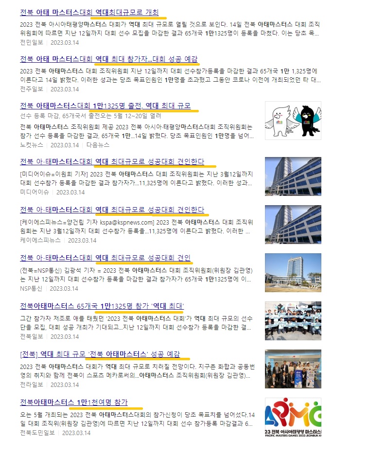▼ 아래 이미지는 “Asia Pacific Masters”로 검색된 보도자료 인용 예시입니다.