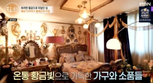 이날 공개된 황재근의 집은 입구부터 화려한 황금빛 인테리어로 눈길을 끌었다. 주방과 침실의 앤티크 가구와 소품들도 눈길을 끌었다.