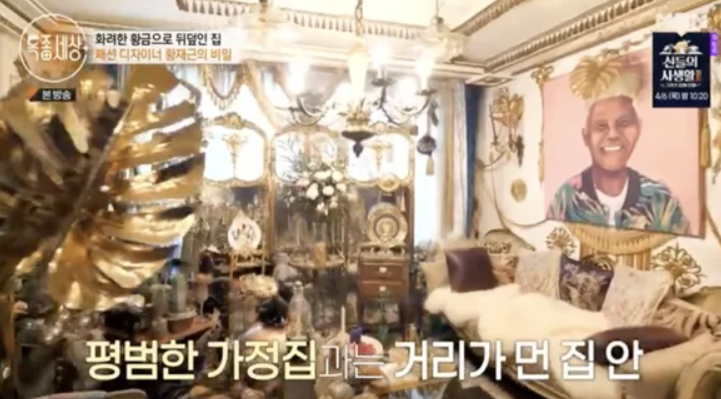 이날 공개된 황재근의 집은 입구부터 화려한 황금빛 인테리어로 눈길을 끌었다. 주방과 침실의 앤티크 가구와 소품들도 눈길을 끌었다.