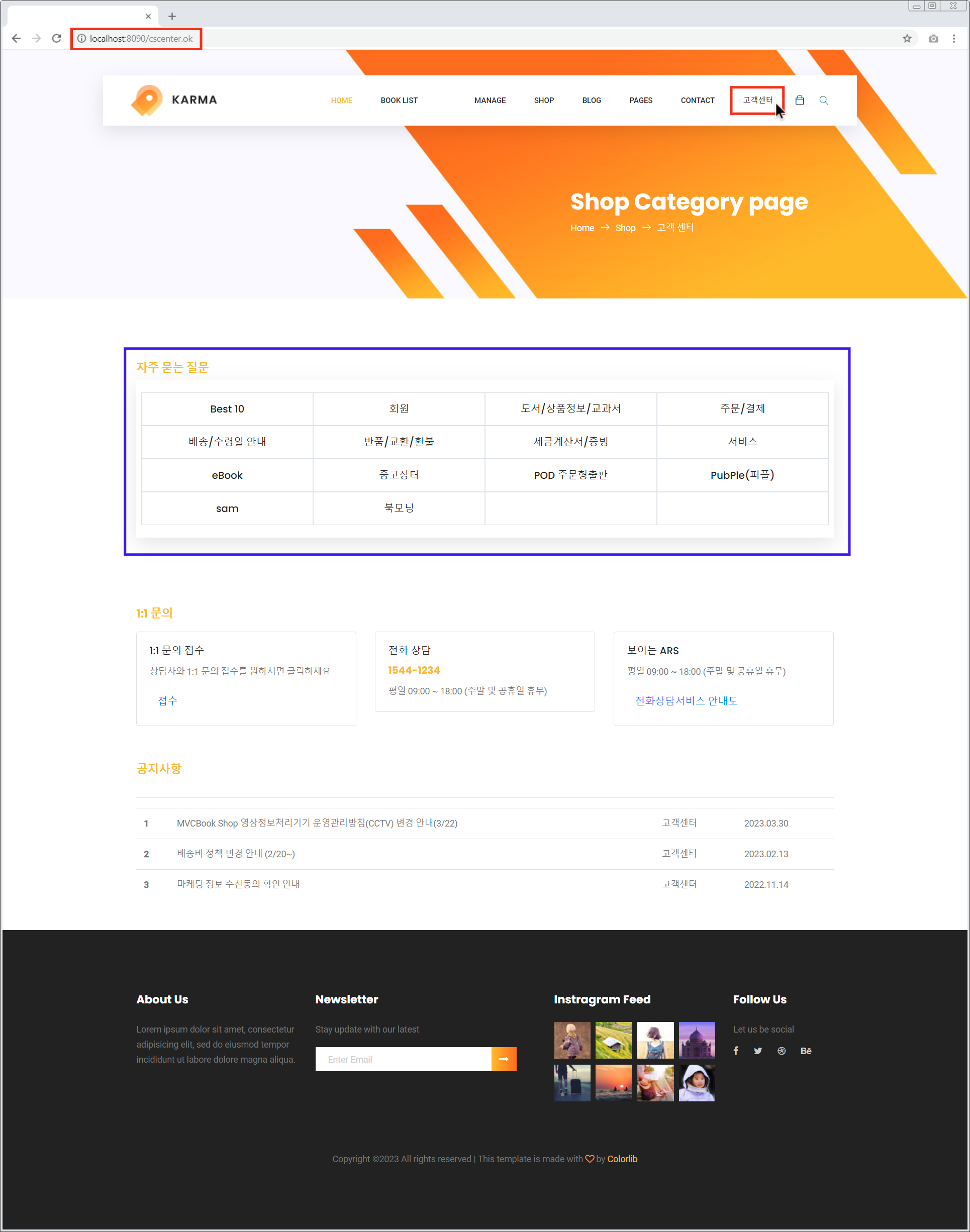 교보문고 고객센터 페이지 구현 가능합니다.